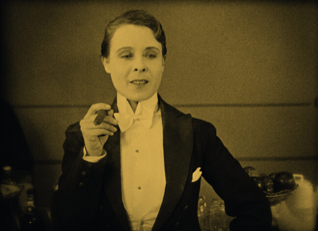 Очень любопытная шведская картина, шедевр немого кино. Строгий отец Кати отказывается покупать ей новое платье, и смелая девушка является на бал во фраке своего брата, вызвав настоящий скандал в местном обществе. Добродетели и пороки в этой комедии выписаны в черно-белых красках, но без нравоучительного тона. Седьмая и последняя из режиссерских работ Карин Сванстрем (она же сыграла в фильме зловредную вдову), которая позже стала художественным директором и ведущим продюсером крупнейшей шведской киностудии Svensk Filmindustri. О таланте Сванстрем высоко отзывался Мориц Стиллер, режиссер, открывший миру Грету Гарбо.
