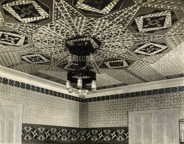 Но здесь нет того, что принесло ему наибольшую славу, - интерьеров. Они попросту не сохранились. К счастью, осталось несколько черно-белых фотографий его уникальной росписи стен и потолка Государственной канцелярии (ныне Министерство иностранных дел).