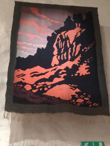 Есть на выставке и один экспонат, представляющий собой не только эстетический, но и исторический интерес. Это гобелен с изображением знаменитого утеса Стабурагс, одного из главных культурных символов Латвии, который уже более полувека скрывается под толщей воды в водохранилище Плявиньской ГЭС.