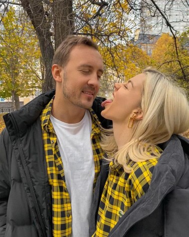 Певица Юлианна Караулова и ее бойфренд продюсер Андрей Черный прогулялись по парку в одинаковой одежде.