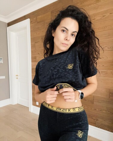 Стройняшка Настя Каменских также любит надевать кроп-топы. Певица выложила утреннюю фотографию, на которой предстала в темном спортивном look’e. Образ Каменских разбавила стильными часами.