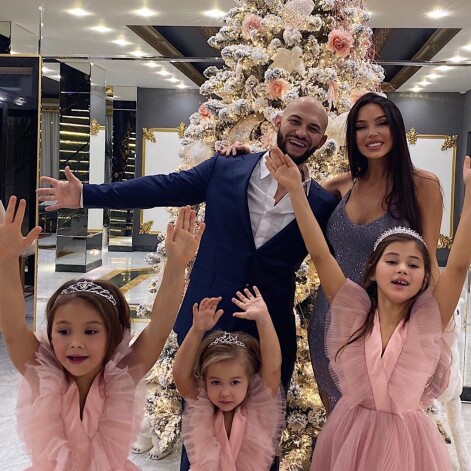 Джиган и Оксана Самойлова встречали Новый год с тремя дочерьми, а их первый сын родился в феврале 2020-го. Оксана часто наряжает Ариелу, Лею и Майю в одинаковую одежду.