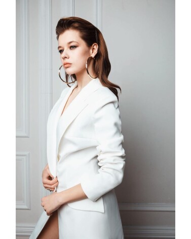 Звезда фильма «Экипаж» совершила эпатажную выходку. Катерина облачилась в стильное пальто трендового молочного оттенка. Шпица расстегнула пуговицы верхней одежды, надетой на голое тело. Артистка придерживала лацканы, игриво обнажив ногу.