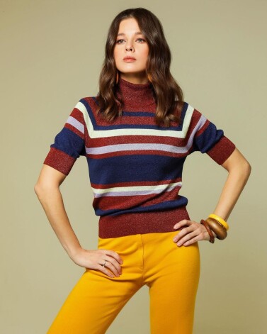 После этого Шпица сменила образ, сделав ставку на 70-е. Она надела полосатую футболку и брюки лимонного оттенка. Прямая укладка, лаконичный макияж и синие тени — артистка тщательно подошла к перевоплощению.