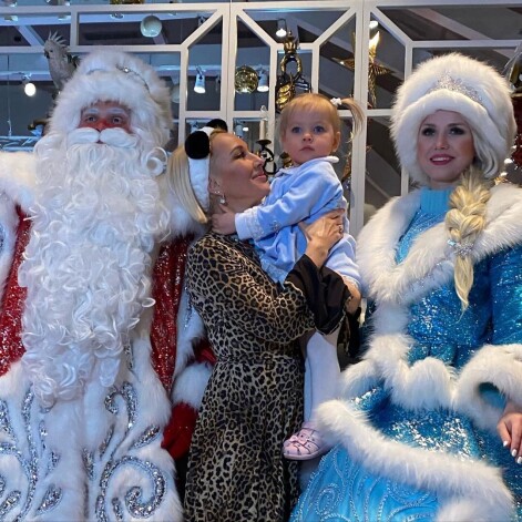 24 декабря известный педагог Елена Куликова, которая занимается с дочкой Тимати Алисой, с дочкой Ксении Бородиной Теоной и другими наследниками знаменитостей, устроила новогодний утренник. Малышам показали спектакли и устроили различные игры. Лера Кудрявцева появилась на мероприятии в леопардовом силуэтном платье. Она нарядила 2-летнюю девочку в голубой бархатный наряд на пуговицах с белым воротником. Малышка примерила образ Снегурочки из сказок.