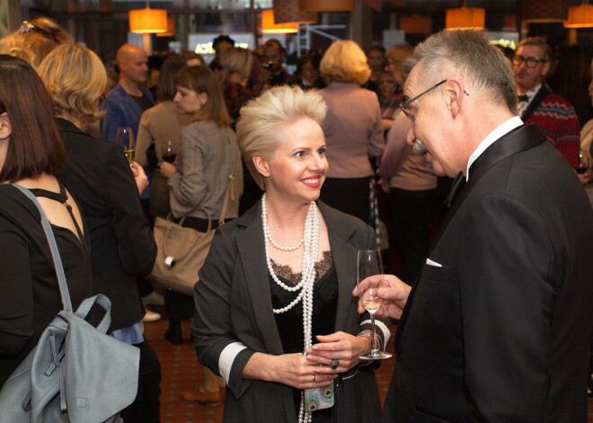Историк моды Александр Васильев на открытии выставки "1918. Роскошь свободы" в Музее моды в Риге
