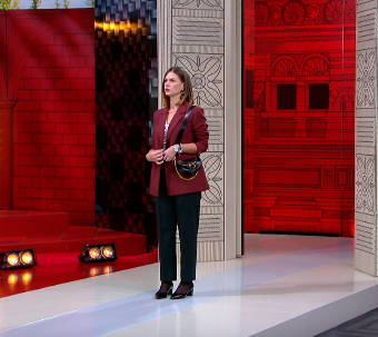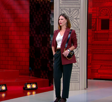 Народный стилист программы помогла сделать офисный гардероб Ирины чуточку ярче. Она подобрала девушке к черным брюкам жакет цвета марсала. Под него приглашенный специалист предложила белый укороченный топ.