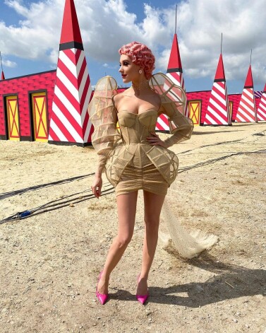 А вот Кристина Асмус на шоу «Золото Геленджика» носила экстравагантные образы с необычными корсетами. «В качестве костюма на Хеллоуин этот образ мог бы быть уместным. Кристина в этом наряде напоминает карамельную муху, декоративные детали на бедрах не оставляют никакого выбора, устанавливая ассоциацию с насекомыми», — призналась Кира.