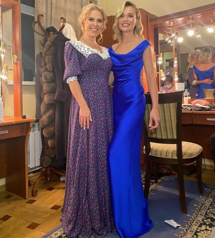 В вечернем и народном стиле: Полина Гагарина запечатлелась с Пелагеей