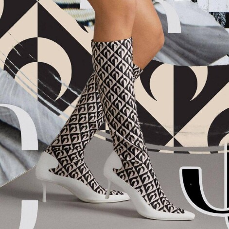 Французский дизайнер Марин Серр сделала коллаборацию обуви вместе с Jimmy Choo. В коллекции шесть моделей в разных цветах: лодочки, высокие сапоги, ботильоны и туфли "Мери Джейн" на каблуке kitten heels. Цена сапог - 995 евро.