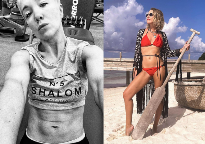 Бывшая и нынешняя супруги Константина Богомолова порадовали фанатов откровенными снимками, продемонстрировав свою прекрасную спортивную форму. Звезда сериала «Содержанки» решила сделать снимок менее гламурным — она опубликовала обычное селфи в тренажерном зале. Актриса позировала без макияжа и с задранной вверх футболкой, обнажившей ее стальной пресс.