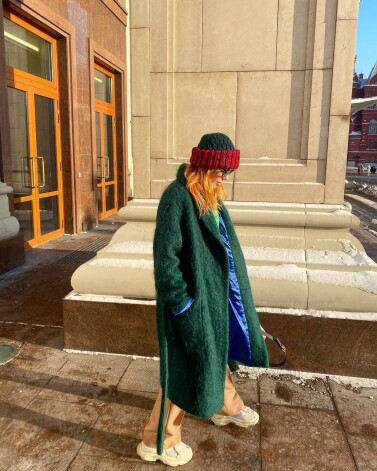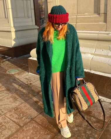 Артистка выбрала изумрудного оттенка вязаный тренч, в тон ему шапку, а также бежевые мешковатые брюки. Снимками Стоцкая поделилась в своем Instagram. Эксперт портала Teleprogramma.pro, дизайнер Сергей Никулин отметил, что Анастасия создала удачный аутфит.