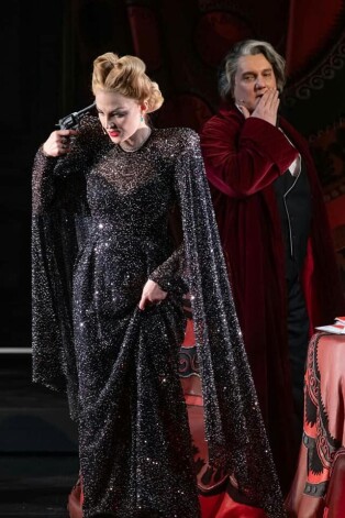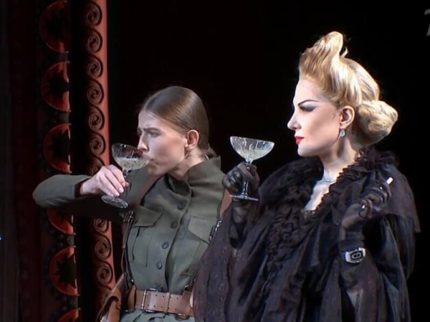 В спектакле “Звезда вашего периода” такую кинодиву сыграла она сама. Главной героине Маргарите Леско за 50. Детей нет, любви нет, ролей тоже нет, хотя на киностудии до сих пор висит ее портрет. Маргарита живет в уединенном поместье вместе с давно влюбленным в нее режиссером Отто и пишет пьесу о собственной жизни, которая, судя по всему, никогда не будет закончена (кипы рукописей сгружены на тележки). Огонек надежды вспыхивает, когда в ее дом попадает взбалмошный сценарист Миша Мышкин (Павел Табаков и Юрий Чурсин). Но счастливого конца, разумеется, не будет…