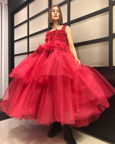 Актриса Розамунд Пайк, получившая статуэтку в категории “Лучшая актриса комедии”, выбрала платье британского дизайнера Молли Годдард, которую называют “королевой тюля”. Ее одежда стоит дешевле, чем творения Джамбаттисты Валли (он тоже часто использует тюль), но выглядит ничуть не хуже.