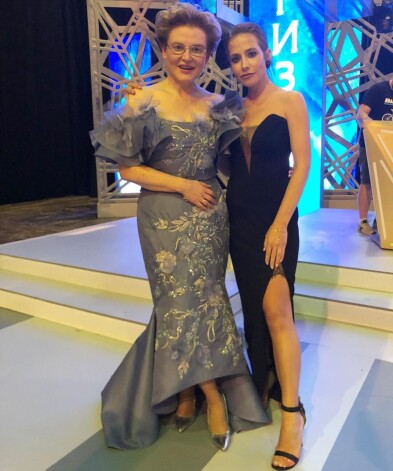 Так, Юлия Барановская опубликовала в своем микроблоге интересный снимок со звездой. На нем обе женщины запечатлены в вечерних платьях. Малышева выбрала синий наряд силуэта «русалка» со спущенными плечами.