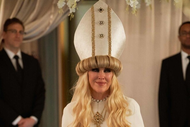 4. Отличные костюмы. Поскольку речь идет о нуворишах, одежда для них является способом самоутверждения. Поэтому отец семейства всегда одет в шикарный костюм, - даже тогда, когда он прочищает унитаз. А гардероб Мойры, вдохновленный нарядами Мортиши Адамс и Дафны Гиннес, вместе с ее сумасбродными париками и головными уборами можно выставлять в качестве отдельной коллекции под названием “Идеальная жертва моды”.