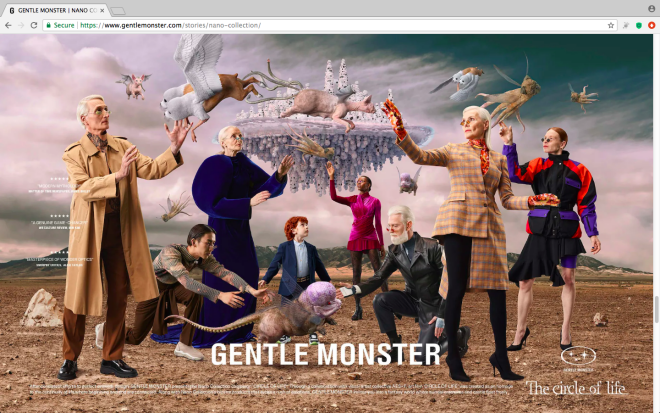 Особо стоит отметить креативность рекламы бренда. Уже второй раз рекламные ролики для них снимает знаменитая группа художников из России AES+F (Татьяна Арзамасова, Лев Евзович, Евгений Святский и Владимир Фридкес). В прошлый раз они создали рекламный ролик для коллаборации Gentle Monster X Fendi, где на планету приземлялись причудливые фантастические объекты.