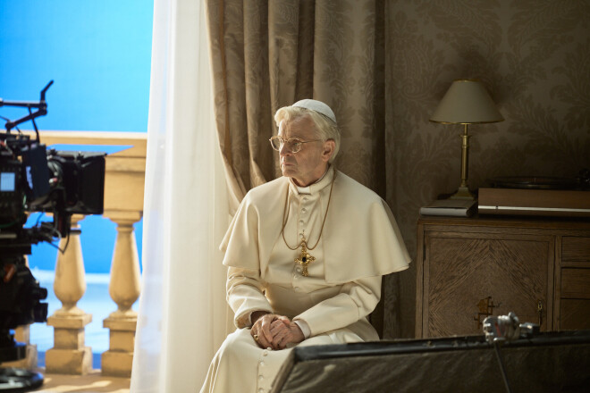 Спектакль “Белый вертолет” о таинственном отречении от власти Бенедикта XVI впервые был показан в Новом Рижском театре 21 ноября 2019 года. Постановка вызвала большой интерес в Латвии и во всем мире. Однако, из-за пандемии коронавируса и связанных с ней ограничений спектакль прошел всего 20 раз, и его увидели не так много зрителей - чуть более 6000. Чтобы обеспечить возможность большему количеству зрителей увидеть эту постановку, в Новом Рижском театре было решено снять по ней кинофильм.