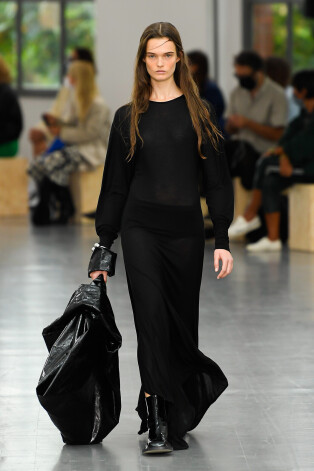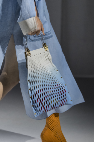 Это отражение тренда, который появился уже несколько сезонов назад и, благодаря пандемии, когда многие занялись рукоделием, стал еще более популярным. Дизайнеры представили немало вариаций на эту тему: сумки, похожие на классическую авоську и на баскетбольную сетку, связанные крючком и выполненные в технике макраме, вечерние и повседневные.