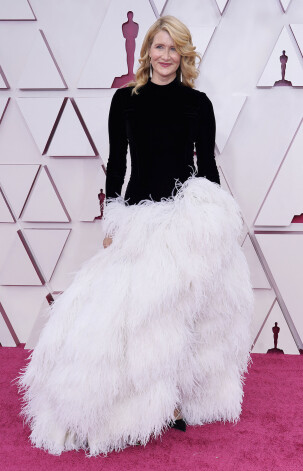 Мои личным фаворитом стала 54-летняя актриса, некогда муза Дэвида Линча Лора Дерн. Вот у кого со вкусом полный порядок! Секрет этого наряда от Oscar de la Renta - необычный контраст между закрытым бархатным верхом, выполненным в виде битловки, и пышной юбки из перьев.