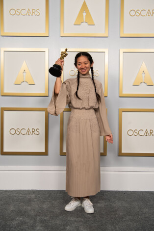 Триумфатор нынешнего “Оскара”, да и вообще всего киносезона, режиссер и продюсер “Земли кочевников” Хлоя Чжао выбрала максимально скромный наряд от Louis Vuitton. Свое нежелание подстраиваться под светские стандарты она подчеркнула прической со школьными косичками и белыми кедами.