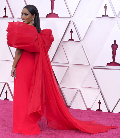 Анжела Бассет в hot red наряде Alberta Ferretti хороша. Очень секси, несмотря на все гиперобъемы.