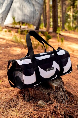 Все вещи ярких цветов с уникальными принтами. При создании линейки наиболее активно использовались два принта Marimekko – Laine («волна») 1965 года и Räsymatto («тряпичный коврик») 2009 года.