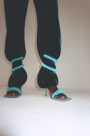 Тему телефонных проводов Bottega Veneta использовала и в украшениях, но на ногах это смотрится особенно сюрреалистично.