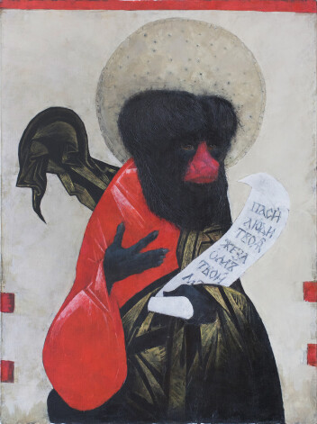 Демина этот примат привлек прежде всего своей красной мордой, напоминающей современную противовирусную маску. Сергей закончил писать картину в первый месяц пандемии, в апреле 2020 года. Но эта работа не столько об эпидемии коронавируса, сколько о более глубоких и вечных темах. Например, о взамоотношениях властителя и народа: праобразом картины стала икона пророка Михея, который держит в руке свиток со словами “Паси народ Твой жезлом Твоим”.
