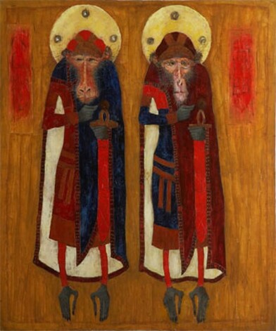 В 2010-м году эта работа имела сумасшедший успех, и с тех пор Демин не раз писал обезьян в иконописной манере.