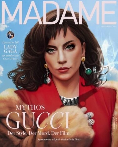 Певица и актриса Леди Гага украсила обложку июльско-августовского номера немецкого журнала Madame, причем появилась она на главной странице глянца в образе темноволосой Патриции Реджани.