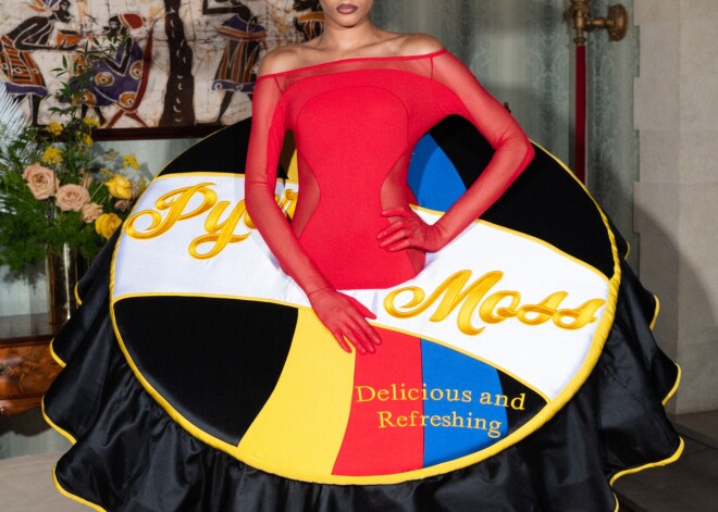 …Накидка из бигуди, пуховик в виде руки, которая держит швабру, платье в форме холодильника, рожка с мороженым или банки арахисового масла… Практически каждая из 26-ти моделей, показанных в этой коллекции, могла бы украсить собой какой-нибудь детский праздник или цирковую постановку. Носибельных вещей там практически не было - буквально пара-тройка нарядов. Да, дебют американской марки Pyer Moss в рамках Недели высокой моды в Париже прошел ярко и зрелищно, но одежда ли это?..