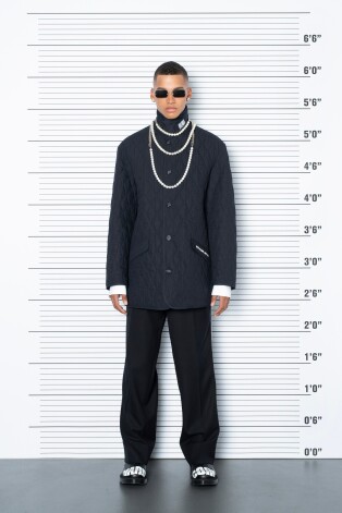 Чувствуется также влияние рэперской культуры. Так, например, поверх стеганых курток и черных пиджаков с глухим воротником-стойкой предлагается носить жемчужные бусы в три ряда (советским гопникам такое бы в голову не пришло).