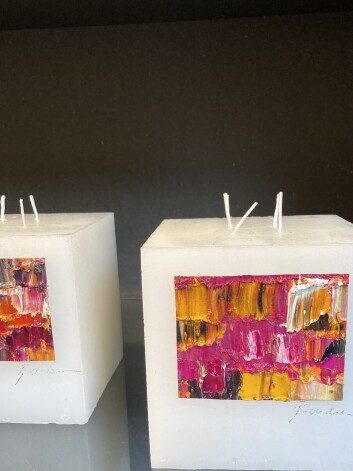 Помимо живописной работы, Иева выставила на аукцион свою авторскую свечу, созданную в сотрудничестве с Latvijas Sveces, а также платье от бренда Mayra, торт от Sweets by Vineta и цветочную композицию от салона Aina - все в единой цветовой палитре.