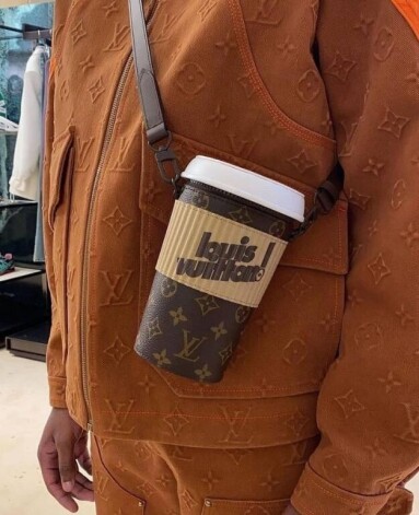 Сумка Coffee Cup, разработанная Вирджилом Абло, имеет размеры стандартного стаканчика для кофе (ну, или чуть побольше) и внешне от него ничем не отличается. Сумка сделана из натуральной кожи в фирменной расцветке бренда и, разумеется, украшена монограммами. Сумка-стакан стала частью капсулы Everyday LV, с помощью которой дизайнер хотел продемонстрировать, что даже самые обычные повседневные предметы можно превратить в модный аксессуар.