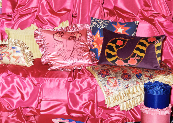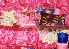 Художница призывает публику смелее самовыражаться в интерьере через цвет и броские принты. В ее коллекции 26 предметов — декоративные подушки и покрывала, вазы и подсвечники, коробки для хранения мелочей и абажуры, коврики и зеркала. Есть и фирменные яркие ткани, которые можно использовать не только для домашнего декора (в качестве занавесок или покрывал), но и шить их них одежду. Дополняет все это новая версия фирменной икеевской сумки-шопера Frakta — ярко-розового цвета с рюшами.