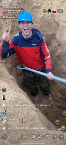 Блогер сообщил, что будет рыть яму, пока не соберет миллион подписчиков. В тот же вечер Андрей приступил к делу и в прямом эфире копал целых два часа. Эфир за это время посмотрели более 165 тысяч зрителей, собрав 2,6 миллионов "лайков". Это стало одним из самых масштабных эфиров в латвийском TikTok.