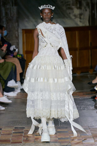 Показ коллекции Simone Rocha весна-лето 2022 прошел на Неделе моды в Лондоне в Церкви Святого Варфоломея Великого.