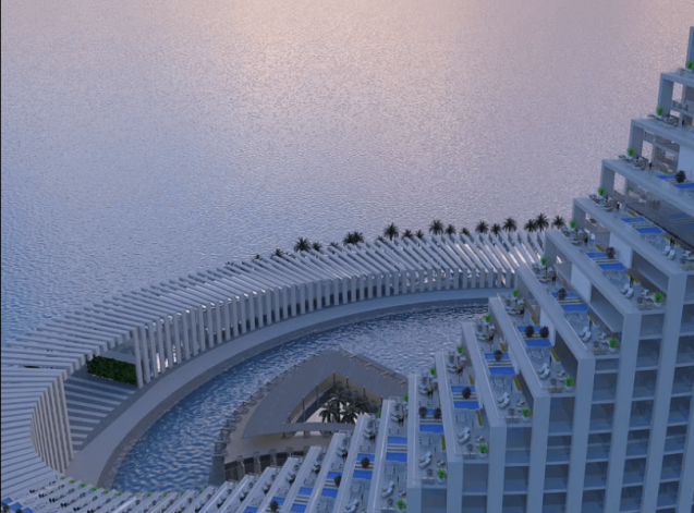 В нижней части комплекса, представленного xCassia, запланирована пристань для яхт, аквариум, выставочный и культурный павильон, а также место для международных конференций вместимостью до 1000 делегатов. На внешней спирали расположатся магазины, рестораны и кафе, яхт-клуб, открытый бассейн на крыше и кинотеатр.