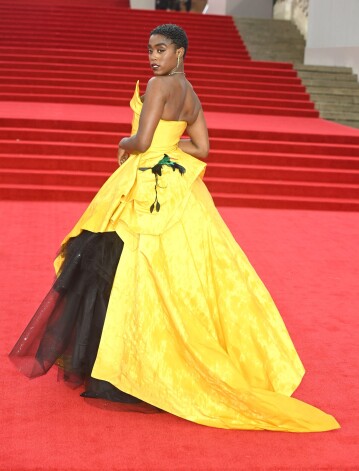 Самый шикарный туалет на красной дороджке продемонстрировала актриса Лашана Линч, сыгравшая агента "00", которая временно замещает Бонда, пока тот отдыхает на Ямайке.