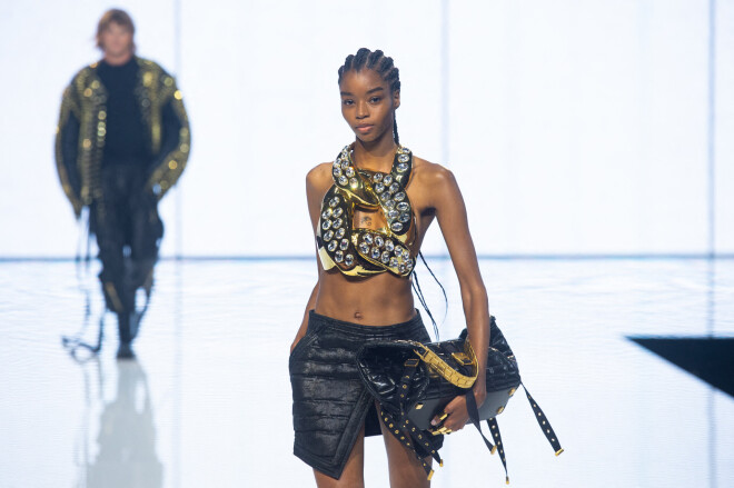 В первой части дефиле была показана коллекция Balmain сезона весна-лето 2022 – как всегда, дерзкая и сексуальная.