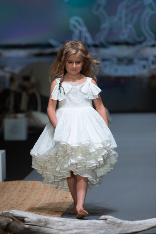 В новой коллекции марки, помимо традиционных принцессиных платьев для девочек (каждое создается индивидуально и подписывается мастером) и платьев греческих богинь для их мам, была и одежда в стиле "курортный шик" - из натуральных материалов, расслабленная, с акцентированными этническими деталями вроде пояса, сплетенного в технике макраме.