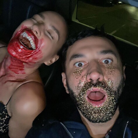 А модель Ирина Шейк и дизайнер Рикардо Тиши не стали заморачиваться с костюмами, а создали свои “дьявольские” образы на скорую руку - при помощи простенького грима.