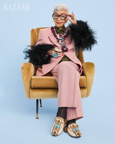 И вот для участия в спецпроекте журнала Harper’s Bazaar пригласили икону моды и самого пожилого инфлюэнсера Айрис Апфель. Она родилась в том самом 1921 году, когда Гуччи Гуччи основал свою модную марку.