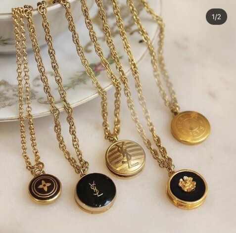 Выглядит вся эта красота невероятно стильно, а стоит от 145 до 350 евро. Говорят, это сейчас особый шик - блеснуть не в колье не из последней коллекции Chanel, а из переработанных шанелевских пуговиц или кнопок.