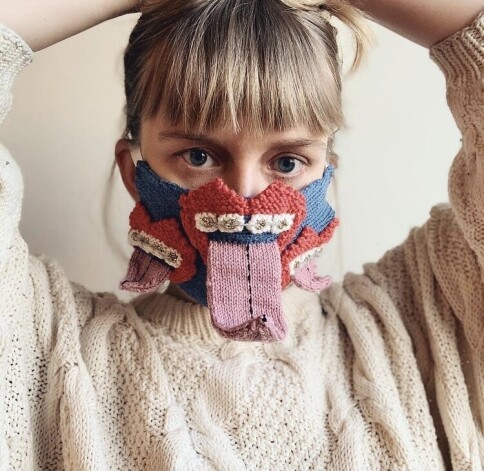 В последнее время Ирарури часто используетэтот мотив для вязаных масок, выражая тем самым свое отношение к пандемии.