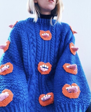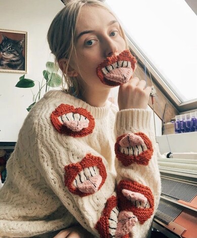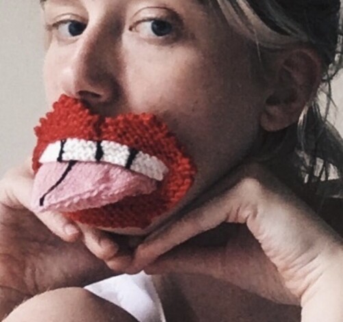 Исландская художница Ирурари часто использует в своих вязаных изделиях мотив губ и высунутого языка. И Rolling Stones здесь не причем.