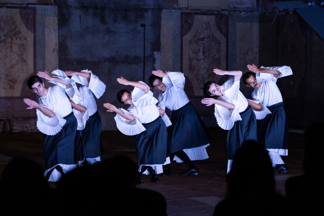 Латвийский дизайнер Ивета Вецмане разработала костюмы для спектакля, который в Санкт-Петербурге создала итальянский хореограф Клаудия Кастеллуччи.