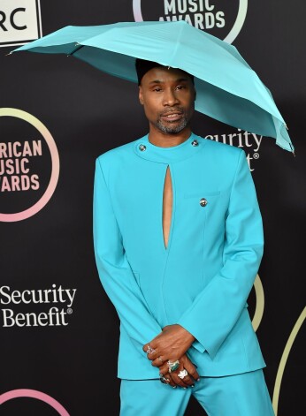 А вот с точки зрения эффектности нарядов, вне конкуренции оказался актер Билли Портер в ярко-голубом костюме со шляпой-зонтиком от Botter.