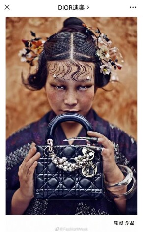 Теперь — скандал с Dior. Публике не понравилась фотография, сделанная известной фотохудожницей Чэнь Мэн для выставки в Шанхае. В газете Beijing Daily появилась статья с заголовком: ”И это азиатка в глазах Dior?”. Далее в статье заявлялось, что ”жуткие глаза, мрачное лицо и доспехи в стиле династии Цин” заставляют китайскую публику “чувствовать себя неуютно”. Также критикам не понравились веснушки модели, поскольку в Китае считается красивой только светлая кожа.